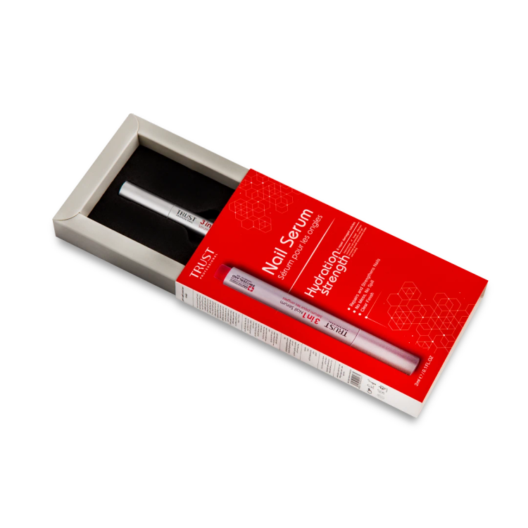 امروزه اکثر مشکلات مربوط به ناخن که شامل شکنندگی، پوسته پوسته شدن ناخن و کوتیکول، بلند شدن صفحهی ناخن، ایجاد برجستگی و یا فرورفتگی در سطح ناخن، رشد نامناسب، عفونت، التهاب و قرمزی بافت اطراف ناخن در اثر آسیب به ماتریکس ناخن و یا کاشت و زیباسازی غیراصولی ناخن ایجاد می شود. بنابراین برای درمان یا رفع مشکلات ناخن میبایست از محصولات مراقبتی استفاده کرد که بتواند ناخنها را ترمیم و مستحکم کرده و یا در صورت وجود عفونت قارچی، به درمان آنها کمک کند. برای درمان شکنندگی ناخنها که با کمبود رطوبت در ناخن ایجاد میشود، میبایست از محصولاتی استفاده کرد که به میزان کافی سطح ناخن را آبرسانی میکنند. کراتین، پروتئین اصلی تشکیل دهندهی صفحه ناخن است. زمانی که به دلایل مختلف میزان کراتین در بستر ناخن کم شود و یا اتصالات بین رشته ها از بین برود، استحکام و یکپارچگی ناخن کم شده و ناخن شکننده یا پوسته پوسته (به اصطلاح پلیسه) میشود. بنابراین استفاده از محصولاتی که ساخت کراتین در ناخن را افزایش دهد، استحکام و سفتی ناخنها را بهبود میبخشد. سرم تقویت کننده ناخن سه در یک تراست با داشتن ترکیبات آبرسان و ویتامینهای موثر، استحکام و رشد ناخن را افزایش داده و به ترمیم آسیبهای کوتیکول کمک میکند. ترکیبات ضد قارچی موجود در این محصول، ضمن بهبود عفونتهای قارچی ایجاد شده در ناخن، التهاب بافت اطراف ناخن را بهبود بخشیده و با حفظ سلامت ناخنها، زیبایی ناخنهای را دو چندان میکند.