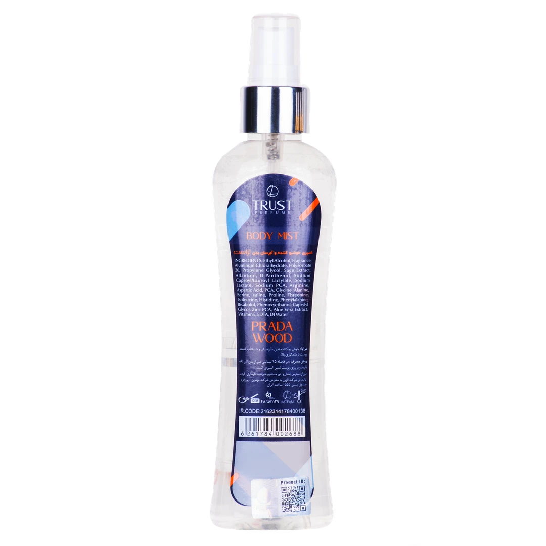بادی میست مردانه تراست مدل Prada Wood، بویی مرموز، عمیق و اصیل دارد که حس منحصربهفرد بودن را القا میکند. رایحه ابتدایی آن پر از تازگی مرکباتی مثل ترنج، لیمو و پرتقال است که با عطر زنجبیل و هل تلفیق شده است. در نهایت عطر چوبهای سفید و عنبر از خودش به جا میگذارد.