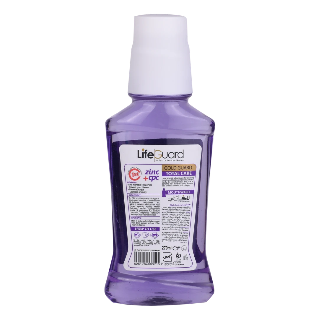 دهانشویه بزرگسال توتال (Gold Guard) برند لایف گارد با حجم 270 میلی لیتر