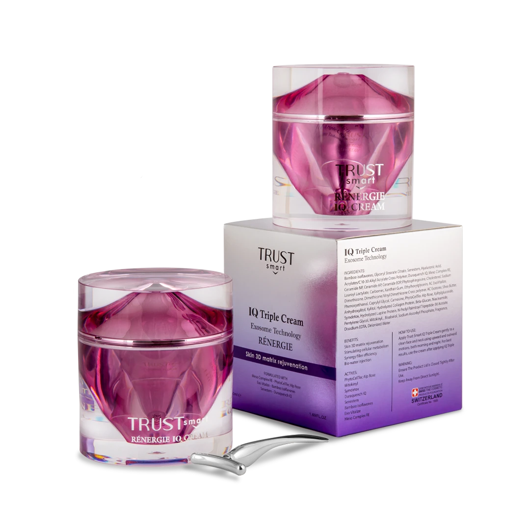 این ترکیب در حقیقت با استفاده از تکنولوژی انتقالی اگزوزوم، بستری را برای انتقال ترکیبات به داخل سلولهای پوستی فراهم کرده و به این ترتیب اصطلاحاً به بیدار شدن سلولهای پوستی و افزایش فعالیت و تکثیر آنها کمک میکند. اگزوزومها حامل ترکیبات پپتیدی موثر در احیای سلولهای پوستی و بازسازی پوست هستند که با استفاده از دو لایه لیپیدی خود وارد سلولهای پوستی میشوند و در عمق مشخصی از پوست تاثر خود را بر جای میگذارند. این اگزوزوم با استفاده در فرمولاسیون کرم سهگانه هوشمند تراست اسمارت با تحریک ساخت سلولهای جدید، چین و چروکهای پوست را برطرف کرده و به حفظ سلامت و جوانی پوست کمک میکند.