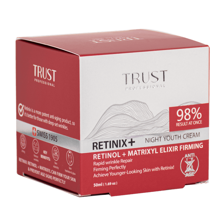 از آنجاییکه با افزایش سن و گذشت زمان، به صورت طبیعی، میزان تولید پروتئینهای استحکامبخش پوست کاهش یافته و پوست دچار چینوچروک میگردد، پوست به مراقبت و آبرسانی بیشتری نیاز دارد؛ بنابراین استفاده از محصولات تخصصی ضدچروک برای همه افراد ضرورت دارد. کرم جوانساز رتینول تراست، به واسطه بهرهمندی از ماده مؤثره رتینول و با افزایش تکثیر سلولهای پوستی و افزایش تولید کلاژن در آنها، به بازسازی سلولهای مرده پوستی و افزایش استحکام پوست کمک میکند و با داشتن خواص آنتیاکسیدانی و مهار رادیکالهای آزاد، جلوی ایجاد چینوچروک در پوست را میگیرد. همچنین با داشتن ترکیب فعال ماتریکسیل مورفومیکس، به طرز مؤثری چینوچروکهای صورت، به ویژه خطوط عمودی آن و چروکهای پنجه کلاغی را از بین برده و به تقویت ساختار پوست صورت کمک میکند.