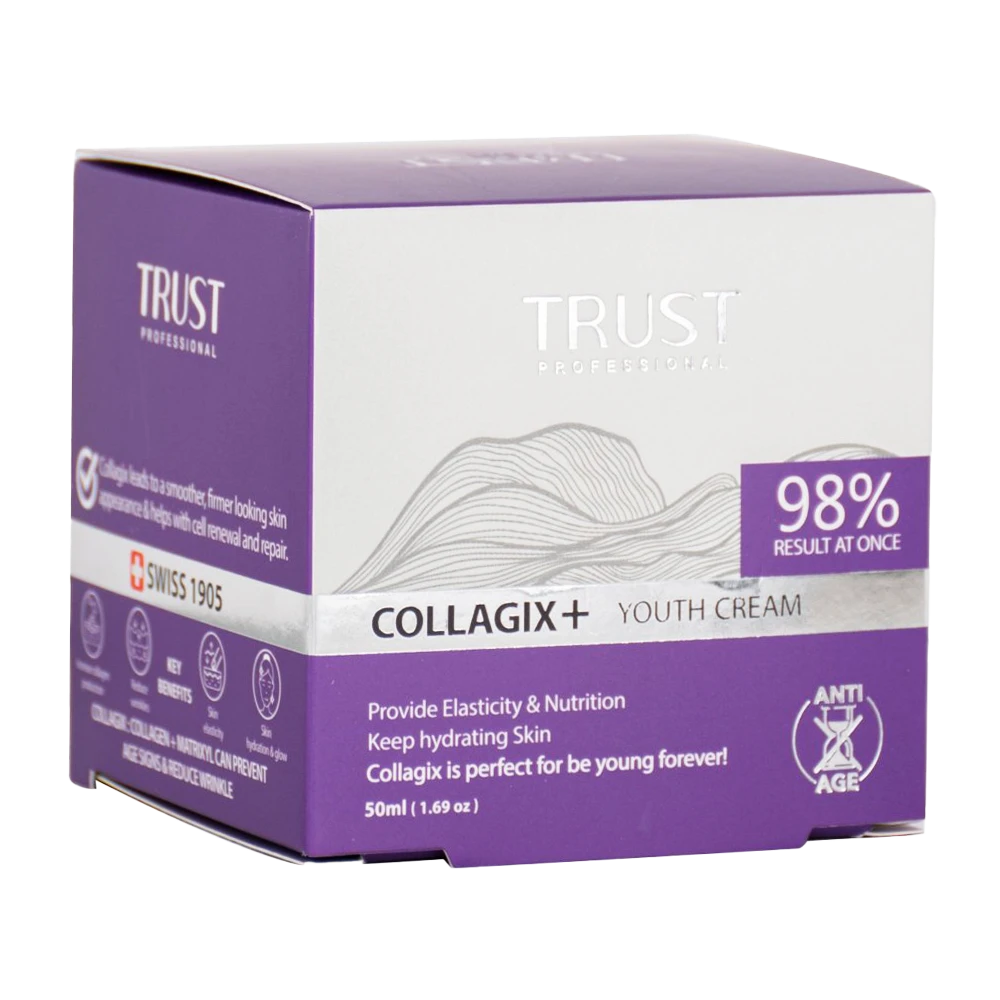 و در نهایت، پلی پپتاید آرژینین و لایزین موجود در کرم جوانساز کلاژن تراست، از ایجاد چینوچروک در پوست جلوگیری کرده و به حفظ شادابی و سلامت پوست کمک میکند. در کنار مواد مؤثره مطرحشده، این محصول تراست، با عصاره دانه لوپینوس آلبوس، به حفظ استحکام و افزایش خاصیت کشسانی پوست، با آسپارلین، به بهبود سوختوساز سلولهای پوستی و تکثیر آنها، با روغن آووکادو، به حفظ استحکام و پایداری پوست و با هلیانتوس آنوس سید اویل، به بهبود آبرسانی و جلوگیری از پیری پوست، کمک میکند.