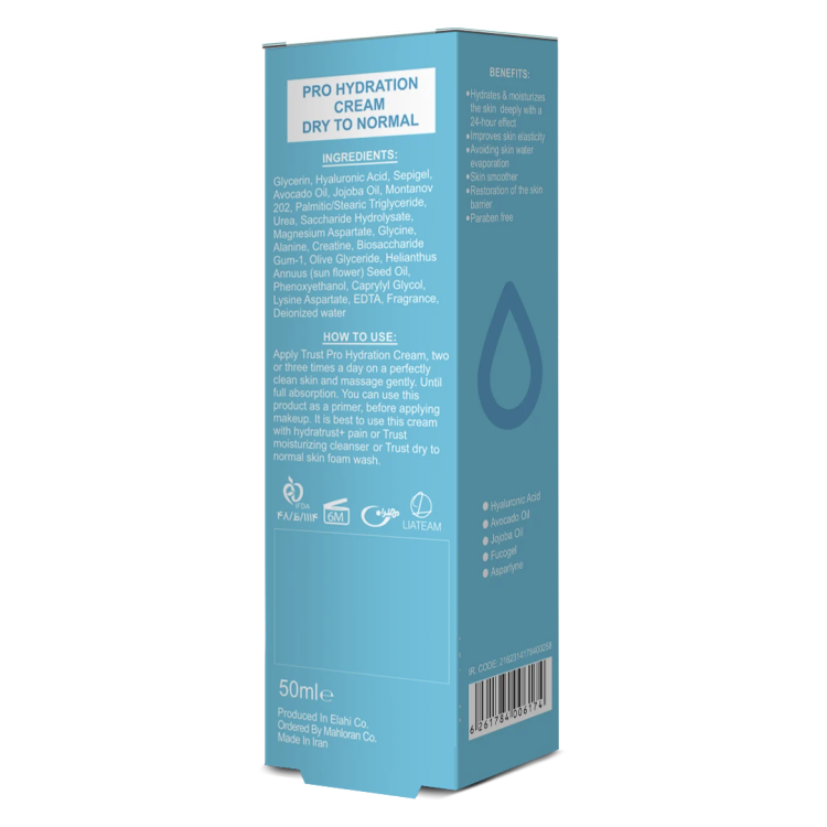 این کرم با برخورداری از مواد موثر منحصربهفرد و زیر نظر دانشگاه لوزان سوئیس تولید میشود. مواد موثری نظیر هیالورونیک اسید، کمپلکس فوکوژل و آسپارلین در کنار استفاده از روغن جوجوبا و آووکادو بصورت کلدپرس (Cold Press)، تاثیر بینظیری روی پوست شما ایجاد خواهد کرد. استفاده از ماده بی نظیرهیالورونیک اسید که از یکی از برترین مواد موثر در آبرسانی محسوب میشود، علاوه بر ایجاد رطوبت مورد نیاز پوست، موجب تاخیر در روند پیری پوست نیز میشود. هیالورونیک اسید موجود در کرم تراست با اتصال به مولکولهای آب روی پوست، موجب تقویت هیدراسیون موثر پوست خواهد شد.