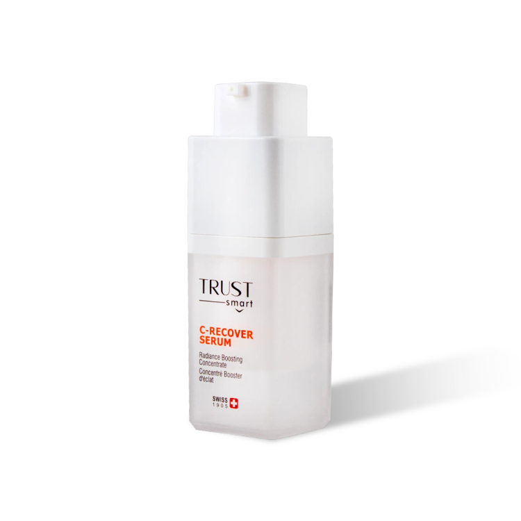 ویتامین C، فراوانترین ترکیب آنتیاکسیدان موجود در پوست انسان است. بر خلاف گیاهان و برخی از حیوانات، بدن ما قادر به تولید ویتامین C نیست. بر خلاف دریافت مقدار زیاد این ویتامین به صورت خوراکی، تنها مقدار کمی از این ویتامین به صورت زیستی در پوست ما فعال است. بنابراین تنها منبع ویتامین C برای پوست استفادهی موضعی از این ویتامین است. ویتامین C فواید بسیاری برای پوست دارد که یکی از مهمترین مزایای این ترکیب برای پوست، خواص روشن کنندگی آن است. این ویتامین آنزیم تیروزیناز را که مسئول تولید رنگدانهی ملانین (رنگدانهای که عامل ایجاد رنگ پوست است) در پوست است غیرفعال میکند و با جلوگیری از تولید این رنگدانه در پوست باعث روشنتر شدن پوست و رفع لکهای پوستی میگردد. ویتامین C از پوست در برابر پرتوهای مضر و رادیکالهای آزاد مراقبت میکند و به این طریق مانع از تیرگی پوست و ایجاد لک میشود. ویتامین C، علاوه بر روشنسازی پوست، نقشهای مهم دیگری از جمله تحریک تولید کلاژن در پوست و جلوگیری از ایجاد التهاب در پوست را برعهده دارد. ویتامین C میزان رطوبت لایهی اپیدرم را افزایش داده و پوست را تقویت و آبرسانی می¬کند. بنابراین این ترکیب مهمترین ترکیب مورد استفاده در فرمولاسیون سرم ویتامین C اسمارت تراست است که با داشتن خواص روشنکنندگی، لایهبرداری، تقویت تولید کلاژن و افزایش استحکام و آبرسانی به پوست، به عنوان ترکیبی موثر در فرمولاسیون این محصول عمل میکند.
