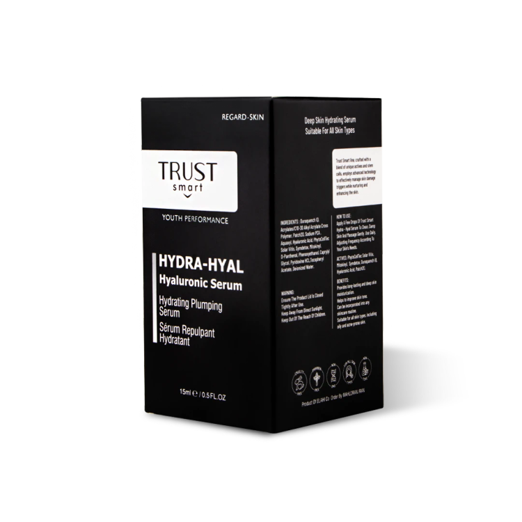 هیالورونیکاسید یا سدیم هیالورونات پلیساکاریدی است که به صورت طبیعی در بدن ما وجود دارد و یکی از ترکیبات اصلی تشکیل دهندهی ماتریکس خارج سلولی است. این ترکیب با توانایی نگه داشتن ملکولهای آب با ظرفیت چندین برابر بیشتر از وزن ملکولی خود، سلولهای پوستی را آبرسانی میکند. هیالورونیکاسید اتصال فیبرهای کلاژن و الاستین در پوست را استحکام میبخشد و به این ترتیب از پیری و ایجاد چین و چروک در پوست جلوگیری میکند. بنابراین هیالورونیکاسید مورد استفاده در سرم آبرسان اسمارت تراست، با تقویت سد دفاعی و حفظ رطوبت پوست، از پیری پوست جلوگیری میکند.